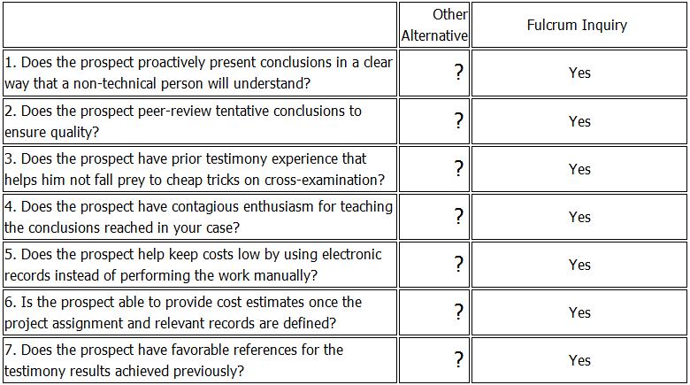 Checklist for Damages Expert Witness Selection Here are items you need to determine when selecting a financial expert to address your damages calculation: coach2016-11-10T11:31:03-08:00Commercial Damages, Other Commercial Damages| Share This Story, Choose Your Platform! FacebookXRedditLinkedInTumblrEmail