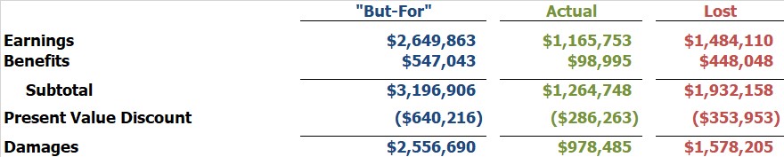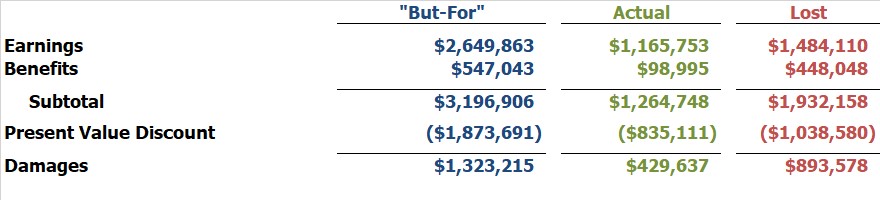 Conceptually, lost compensation is what Plaintiff should have earned had the alleged incident not occurred (aka “but-for” compensation) less actual compensation (aka “mitigation”). Although the concept may be relatively simple to describe, the data inputs underlying the calculations vary significantly, as does the final result. Critical components of the calculations include (i) information specific to Plaintiff, (ii) various third-party credible statistics and studies, and (iii) market conditions, all of which must be distilled into a proper methodology for damage computation.